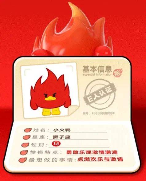小火鸭的设计灵感源于绝味鸭脖的“绝”字和火焰符号,将两者巧妙结合,形成了一只身披红色火焰、造型简约而不失可爱的鸭子形象。其火红的身躯与亮黄色的喙脚形成鲜明对比,视觉冲击力极强,令人过目难忘。